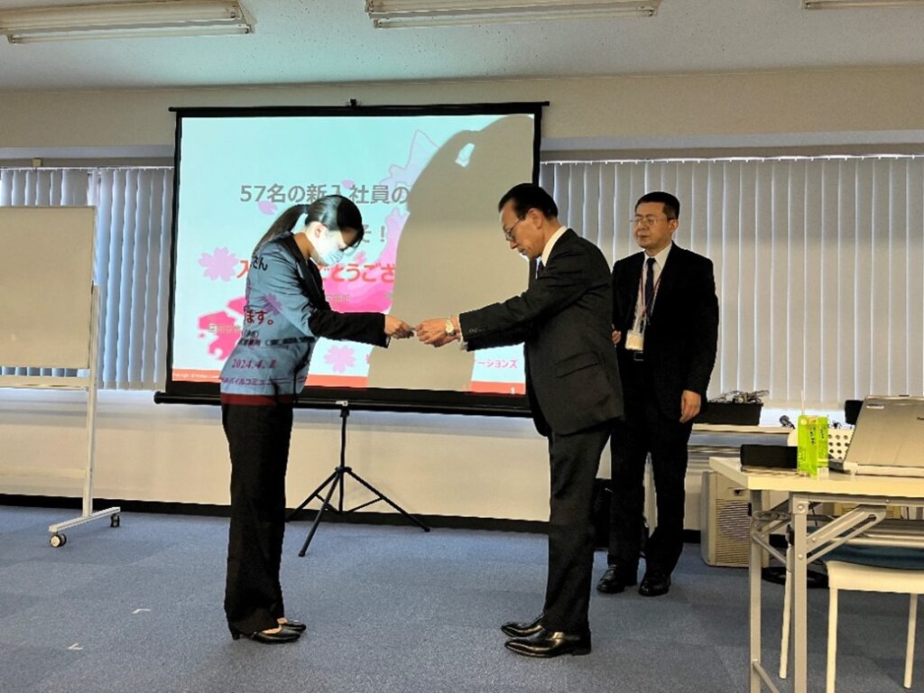 とのモバイルコミュニケーションズの未来を担う新入社員の皆さんへの期待が込められたメッセージが贈られました。